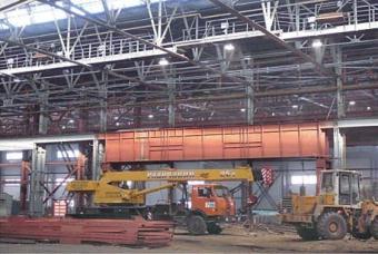 Объем работ - Монтаж металлоконструкции - 620 тонн. Монтаж стенового ограждения 3 500 м2 и профилированного листа - 3 000 м2. Так же производились работы по выверке подкрановых путей. Монтаж части конструкций производилось методом "выбивки волонн".