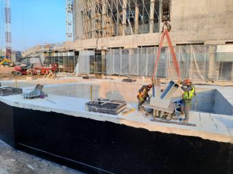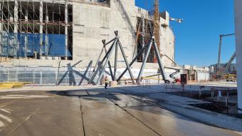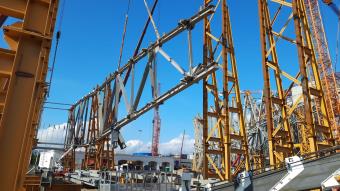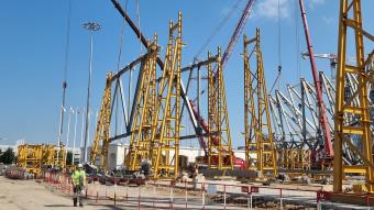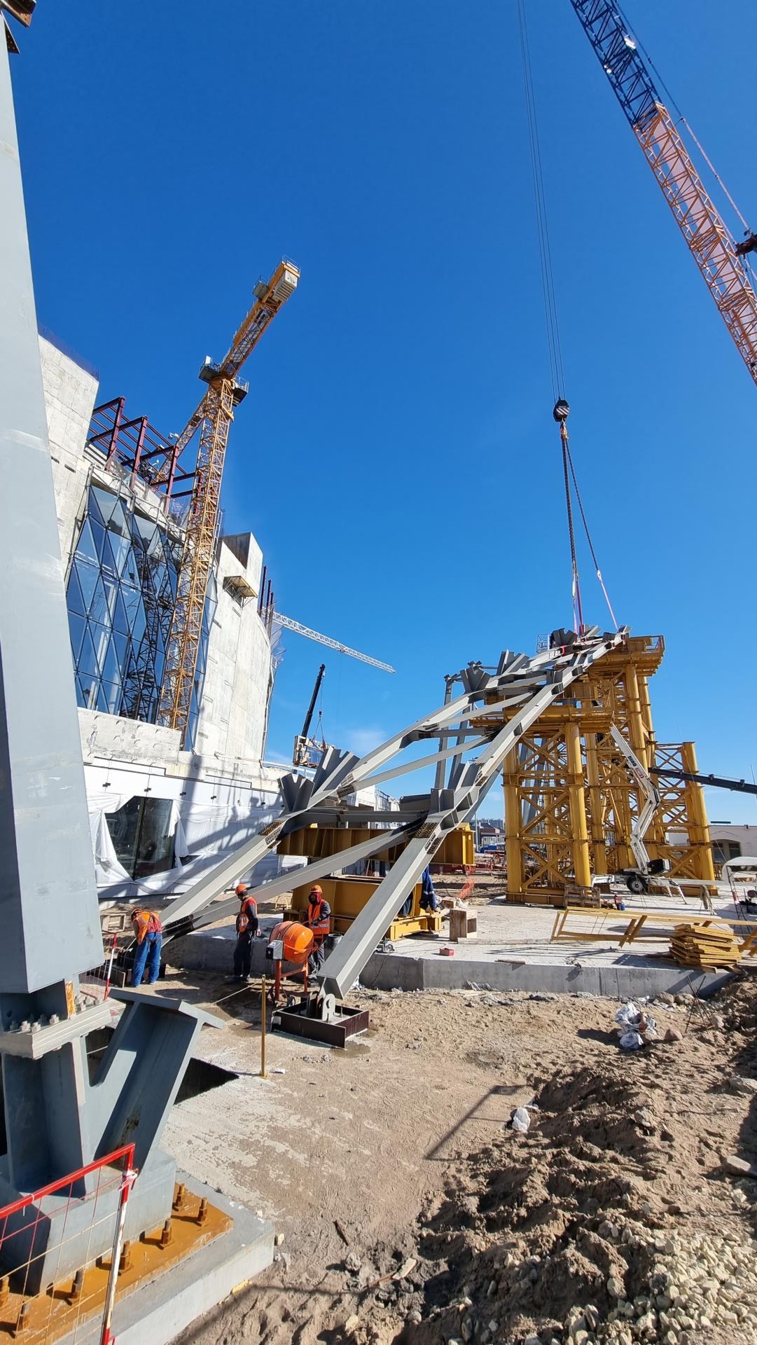 Работы по монтажу ведутся тремя потоками, в монтаже задействованы большегрузные краны LR1750 -2 шт., LTM 1500, LTM 1300, LTM 1100.